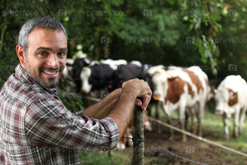 Мужчина на фоне коров