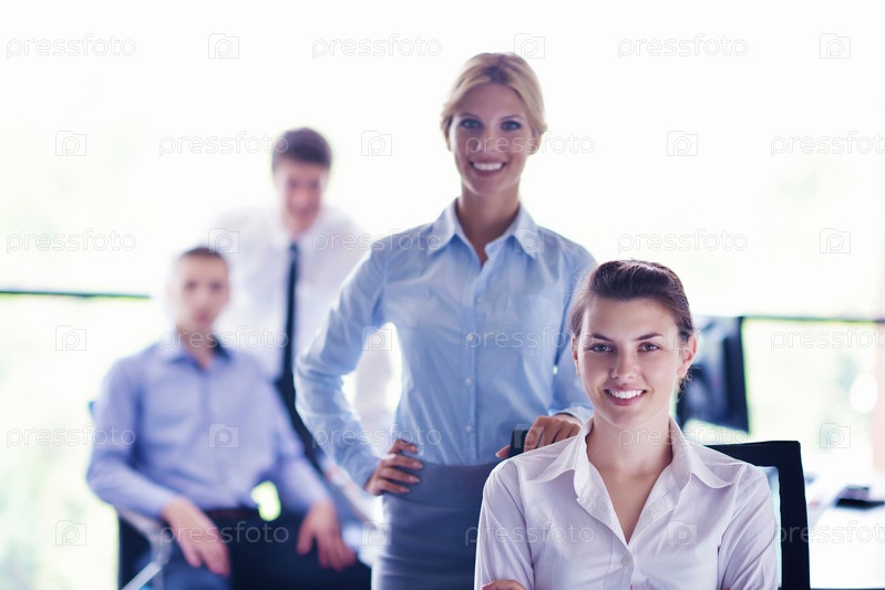 Деловая женщина и ее сотрудники в фоновом режиме в офисе