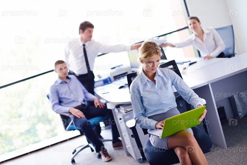 Деловая женщина и ее сотрудники в фоновом режиме в офисе
