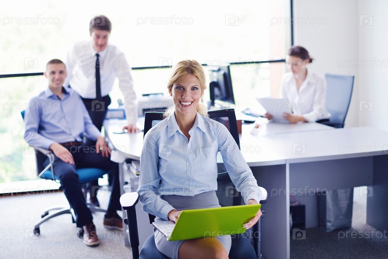 Деловая женщина и ее сотрудники в фоновом режиме в офисе