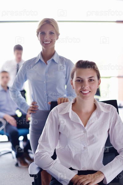 Деловая женщина и ее сотрудники в фоновом режиме в офисе