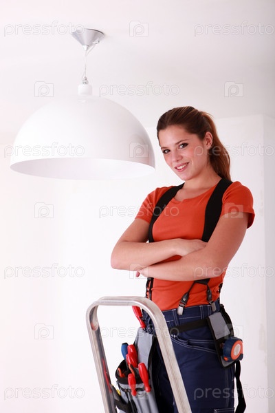 Молодая женщина меняет лампу