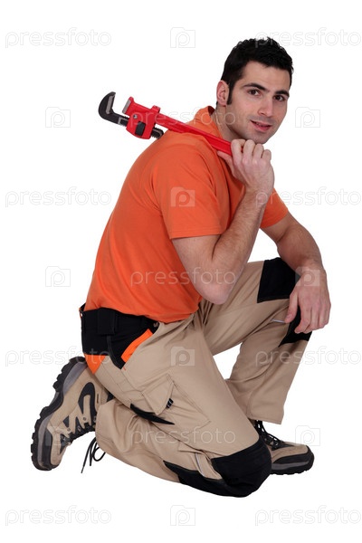Рабочий с разводным ключом