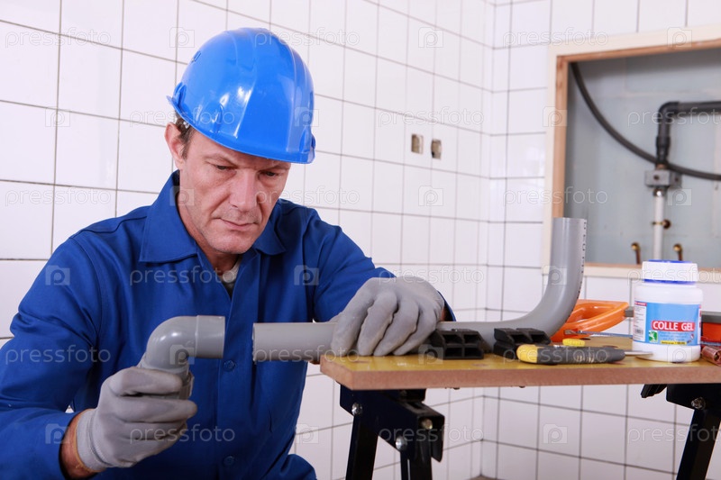 Мастер делает монтаж труб