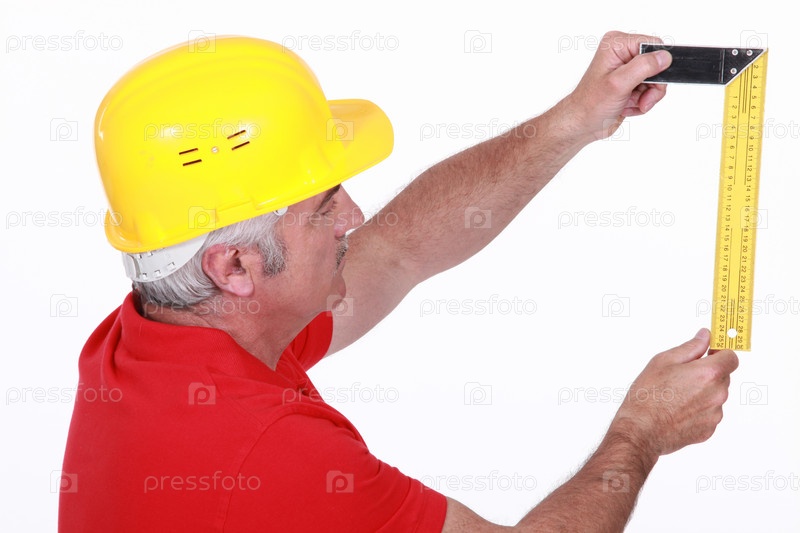 Строитель измеряет углы