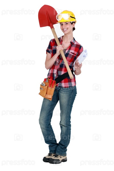 Девушка архитектор с лопатой в руках