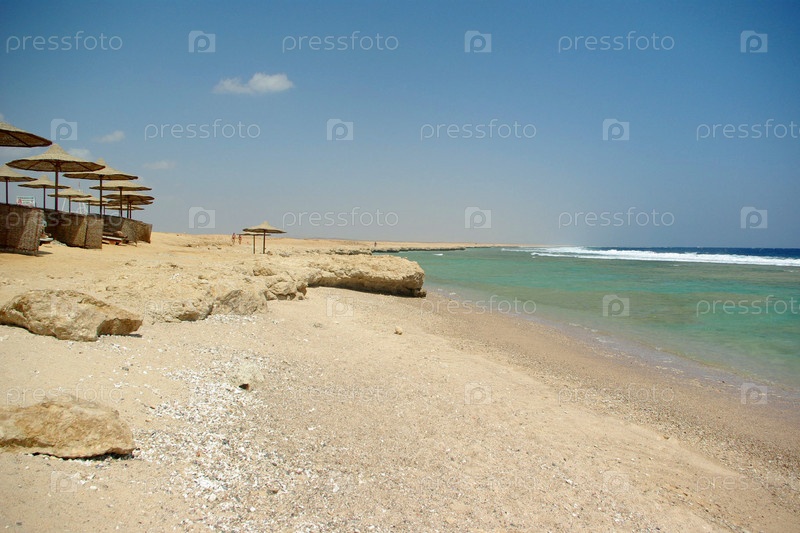 Зонтики от солнца на морском пляже