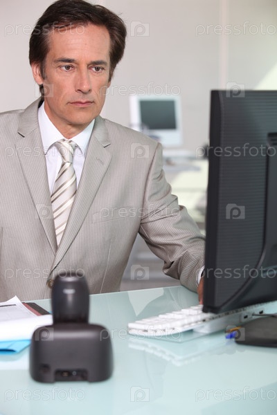 Бизнесмен работает на компьютере