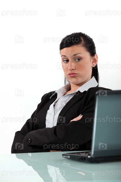 Бизнес-леди смотрит на ноутбук