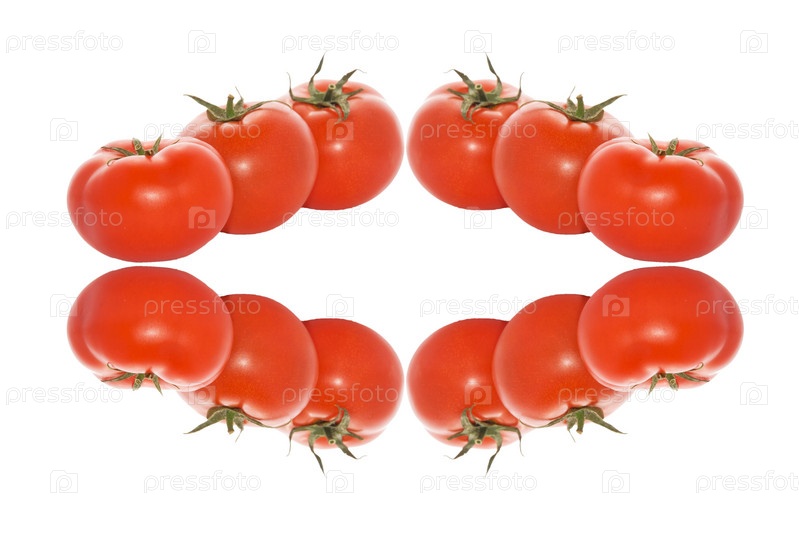 Помидоры с отражением на белом фоне