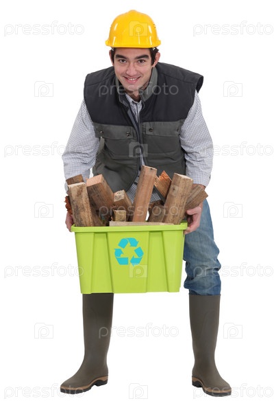 Строительный рабочий и концепция переработки отходов