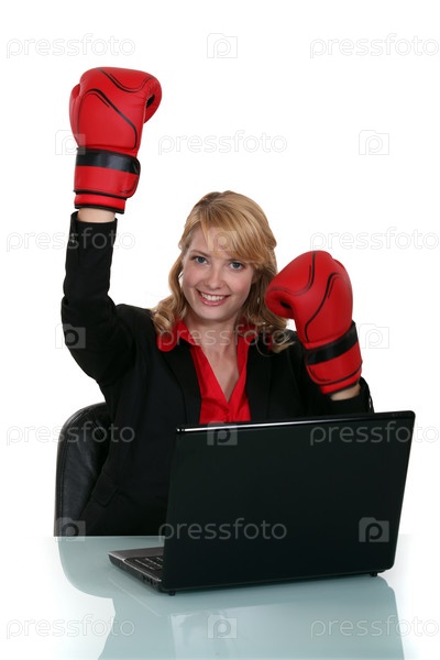Бизнес-леди в боксерских перчатках