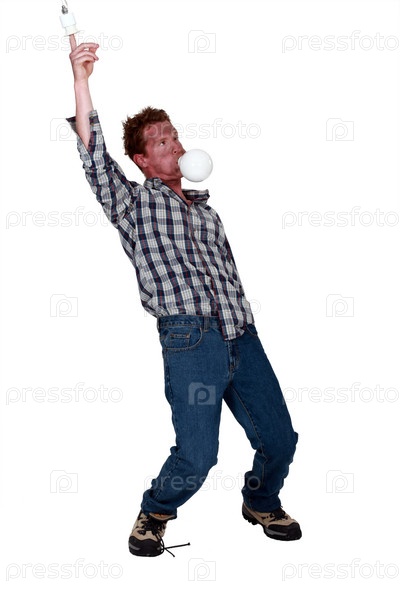 Мужчина с лампочкой во рту