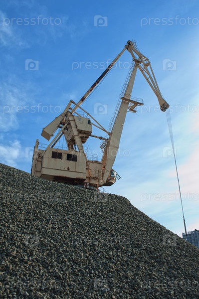 Кран на куче щебня