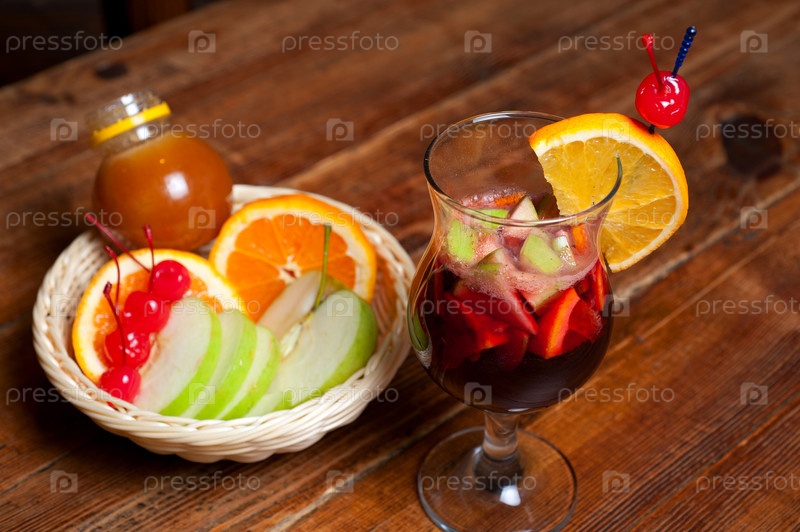 Глинтвейн и тарелка с нарезанными фруктами