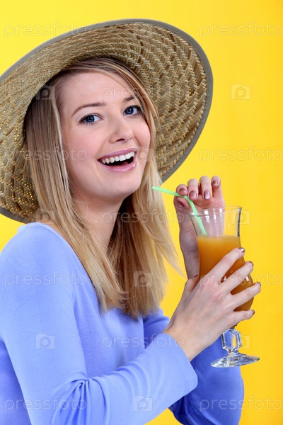 Женщина пьет сок