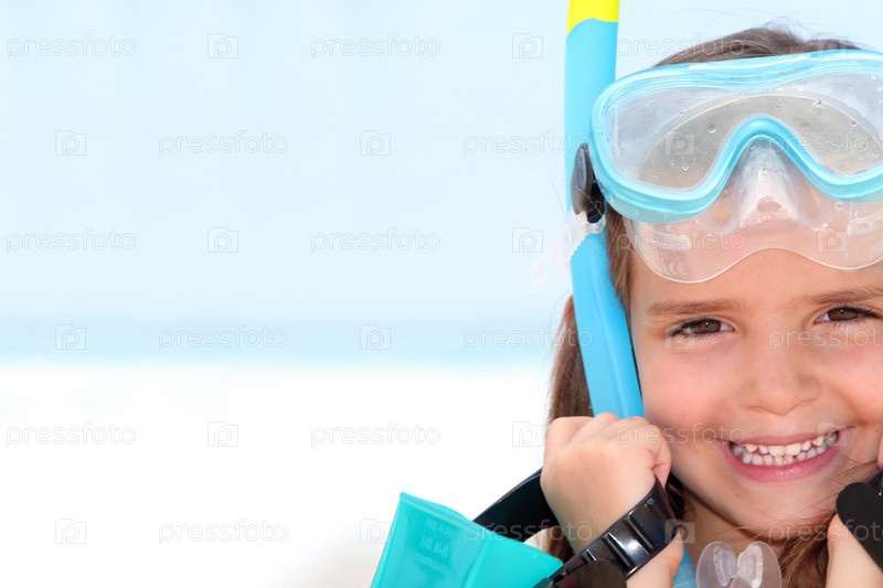 Маленькая девочка в маске с трубкой