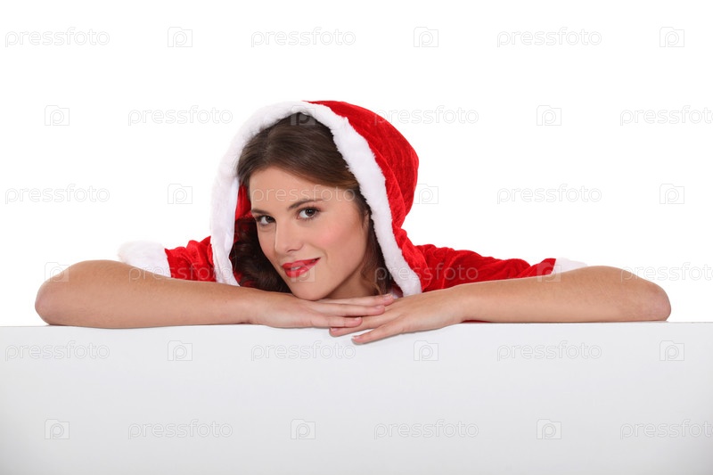 Женщина с рождественским плакатом