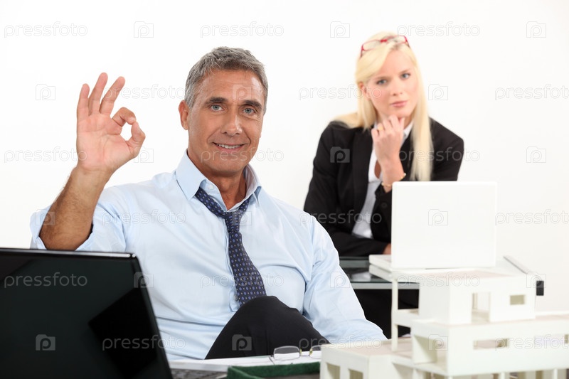 Агент по продаже недвижимости показывает ОК