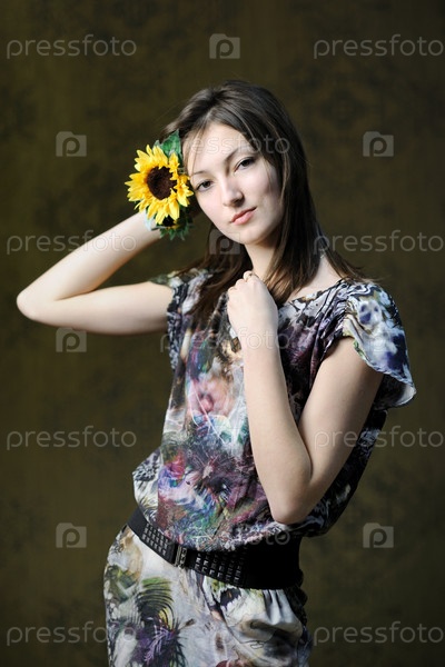 Красивая женщина с подсолнухом в волосах