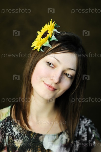 Красивая женщина с подсолнухом в волосах