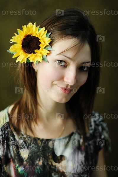 Красивая женщина с подсолнухом в волосах
