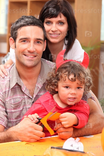 Семья готовится к хэллоуину