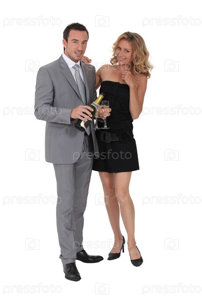 Пара с бутылкой шампанского