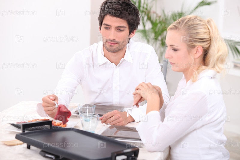 Пара готовит мясо