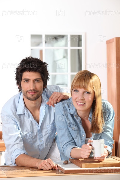 Пара пьет кофе на кухне