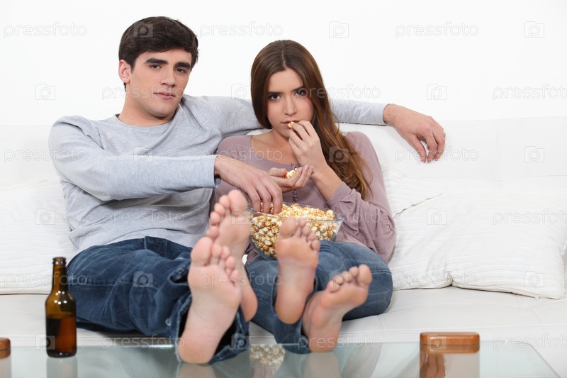 Пара на диване с попкорном