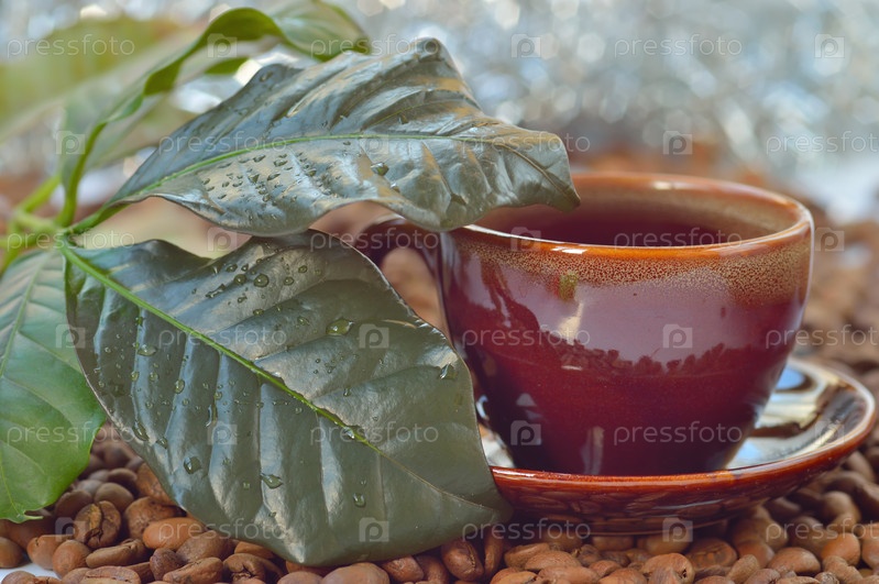 Зерна и листья кофе