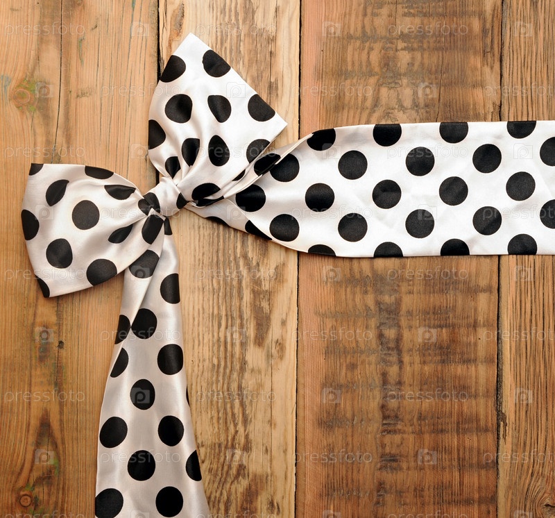 Бантик в черный горошек на фоне досок