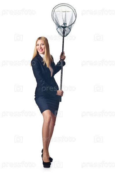 Красивая молодая девушка с сачком в руках