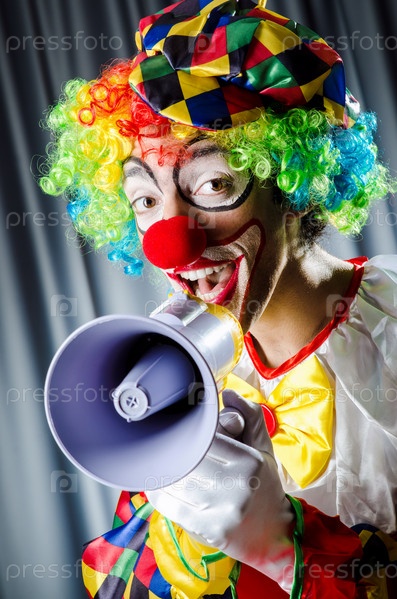 Забавный клоун с громкоговорителем