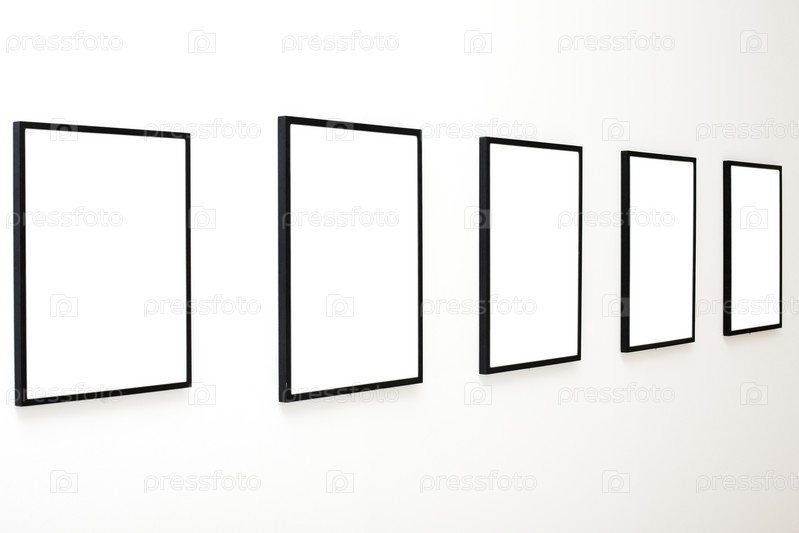 Пять пустых рамок на выставке белой стены в Музее