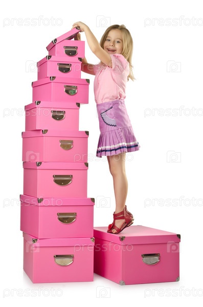 Милая маленькая девочка с розовыми коробками