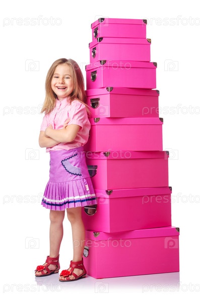 Милая маленькая девочка с розовыми коробками