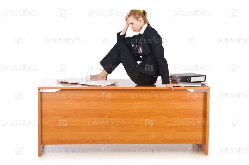 Бизнес-леди сидит на столе