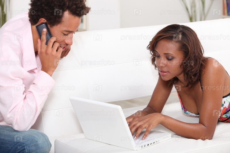 Пара с ноутбуком и телефоном