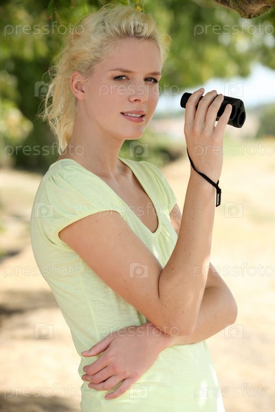Красивая женщина с биноклем