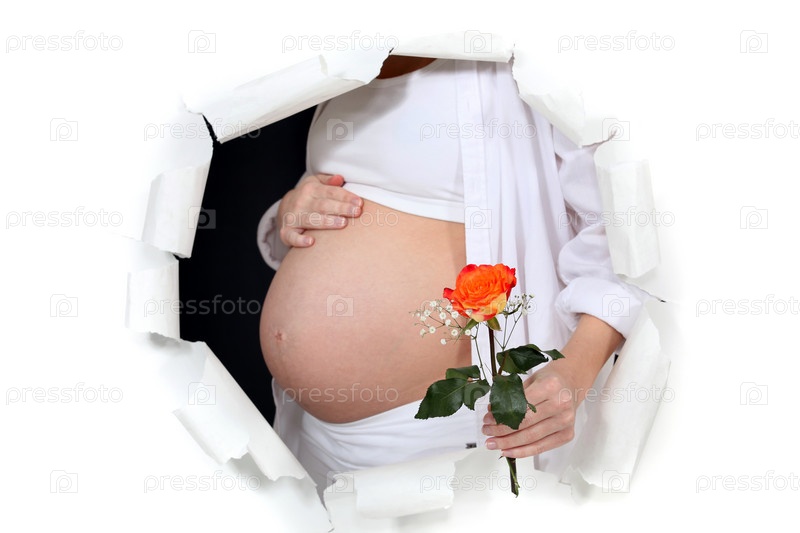 Беременная женщина держит розу