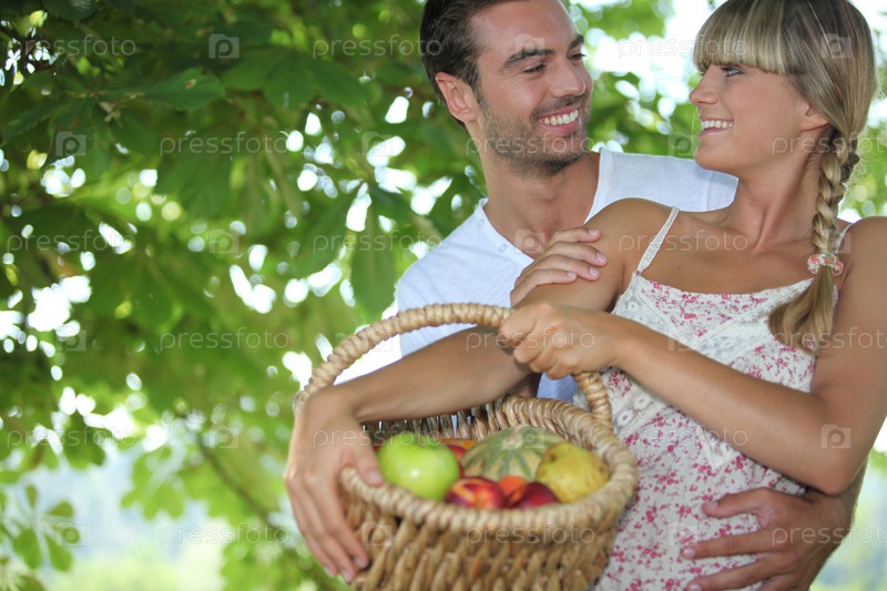Пара с корзинкой фруктов