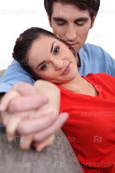 Пара сидит вместе на диване