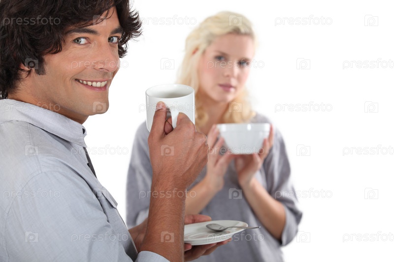 Пара пьет горячий напиток