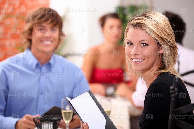 Молодая пара обедает в ресторане