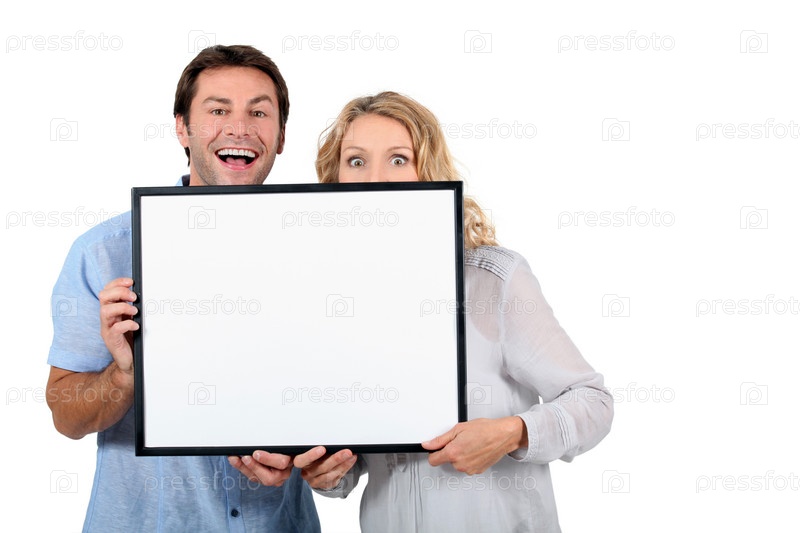 Пара с рекламным щитом