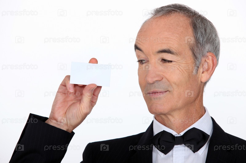 Зрелый мужчина в костюме с визитной карточкой