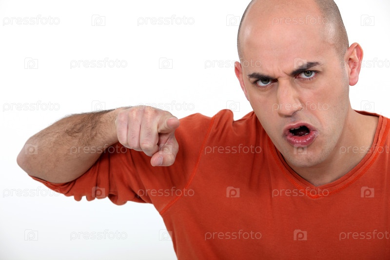 Злой мужчина указывает пальцем