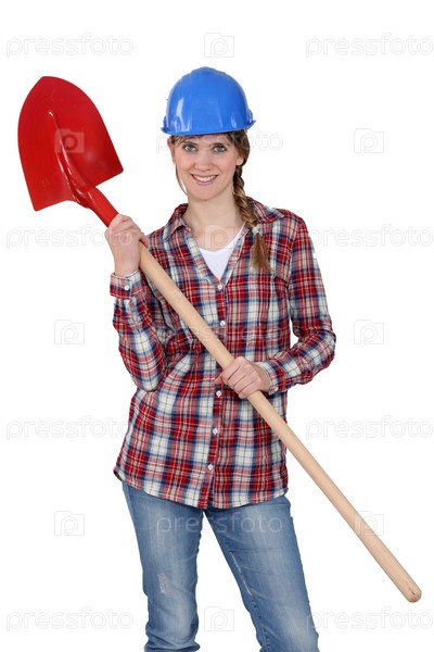 Женщина в каске с лопаткой